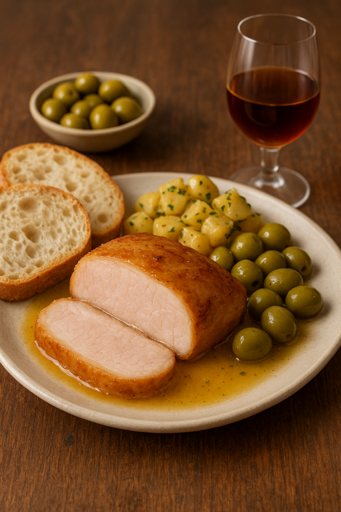 Aunque el lomo en manteca es popular todo el año, en Navidad se convierte en un imprescindible. Esta receta gaditana consiste en cocinar lomo de cerdo en manteca de cerdo con pimentón, orégano y laurel, logrando una carne tierna y llena de sabor. Se sirve frío o templado, acompañado de pan artesano. En muchas casas es parte del picoteo previo a la comida principal.