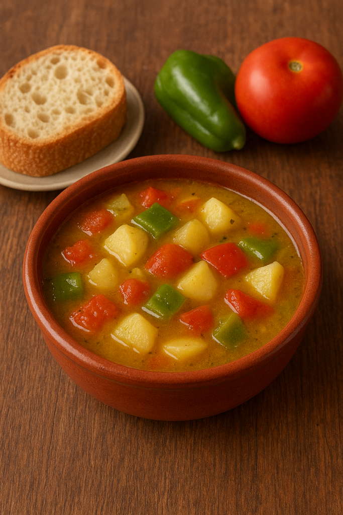 Para quienes prefieren un plato más ligero antes de los contundentes segundos, la sopa perota, originaria de Álora (Málaga), es una excelente opción. Aunque tradicionalmente se come en otoño, muchas familias la incorporan al menú navideño por su carácter reconfortante. Está hecha con pan, patatas, ajo, tomate y pimiento, todo cocinado lentamente hasta formar una sopa espesa y nutritiva. Un plato humilde que aporta calidez en días fríos.